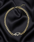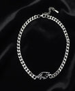 The necklace is sized at a striking 35 cm (Choker Length), ensuring the chain and the seamlessly integrated, cut-out Philadelphia Eagles logo sit high and prominently at the base of the throat. It's a powerful statement piece that combines iconic team loyalty with on-trend luxury.